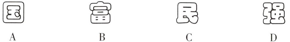 (2)对折一次,剪出一种窗花,窗花里包含轴对称的美术字;