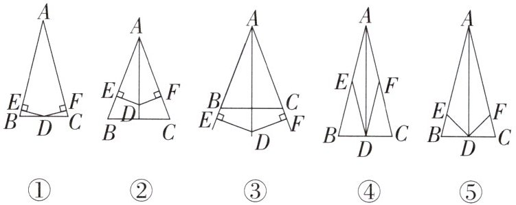 在△BDE和△CDF中,$\begin{cases} ∠DEB= ∠DFC, \\ ∠B= ∠C, \\ BD= CD, \end{cases} $