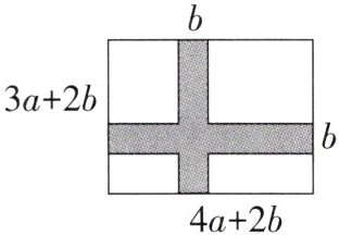 7.如图,为提高业主的宜居环境,某小区物业准备在一个长为$(4a+2b)$米,宽为$(3a+2b)$米的长方形草坪上修建两条宽为b米的小路,求小路的面积.(要求化成最简形式)