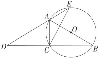 2.如图,$AB为\odot O$的直径,点$C在\odot O$上,延长$BC至点D$,使$CD= BC$,连接$DA$并延长,交$\odot O于点E$,连接$AC$,$CE$.