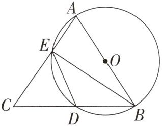 3.如图,在$\triangle ABC$中,$AB= AC$,以$AB为直径的\odot O分别交AC$,$BC于点E$,$D$,连接$DE$,$BE$.