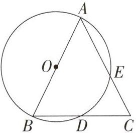 1.如图,在$\triangle ABC$中,以$AB为直径作\odot O$,交$BC$,$AC于点D$,$E$,且点$D为BC$的中点.