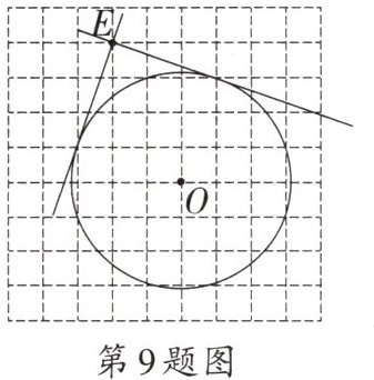 9. 如图是由边长相等的小正方形组成的网格,每个小正方形的顶点叫做格点,点O,E均为格点,过点E作$\odot O$的切线EM,EN,切点分别为M,N(点M在点N的左侧),仅用无刻度的直尺在给定的网格中完成作图(保留作图痕迹,不写作法).