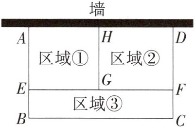 10. 为了节省材料,某农户利用一段足够长的墙体为一边,用总长为$120\ m$的围网围成如图所示的①②③三块矩形区域,其中$AE= 2BE$,$BC= x\ m$.当$x$为何值时,矩形$ABCD的面积为675\ m^2$?