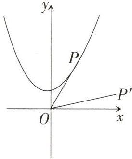 综上,(1)$y=\frac{1}{2}x^{2}+1$;(2)$P'\left(\frac{5\sqrt{2}}{2},\frac{\sqrt{2}}{2}\right)$或$P'\left(-\frac{\sqrt{2}}{2},\frac{5\sqrt{2}}{2}\right)$。