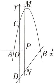 2.如图,抛物线$y= -x^{2}+bx+c$与x轴交于点A(-1,0),B(6,0),与y轴交于点C,经过点B的直线$y= mx+n$与y轴交于点D,且点C与点D关于x轴对称,过点P(2,0)作x轴的垂线交抛物线于点M,交直线BD于点N.