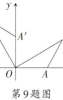 9. 如图,在平面直角坐标系中,点B在第一象限内,点A在x轴的正半轴上,∠AOB= ∠B= 30°,OA= 2,将△AOB绕点O逆时针旋转90°得到△A'OB',则点B的对应点B'的坐标是______.