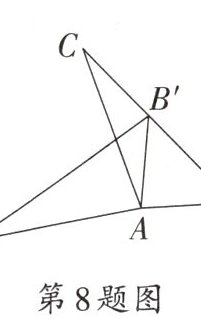 8. 如图,在△ABC中,∠BAC= 108°,将△ABC绕点A逆时针旋转一定角度得到△AB'C'.若点B'恰好落在BC边上,且AB'= CB',则∠C'的度数为______.