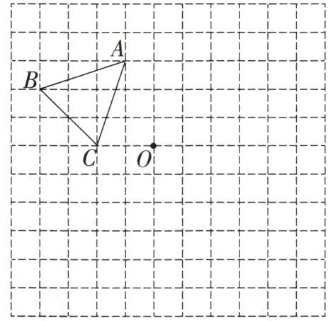解:根据中心对称的性质,连接$AO$并延长到$A_2$,使$OA_2 = OA$;连接$BO$并延长到$B_2$,使$OB_2 = OB$;连接$CO$并延长到$C_2$,使$OC_2 = OC$,然后连接$A_2B_2$,$B_2C_2$,$C_2A_2$,得到$\triangle A_2B_2C_2$。