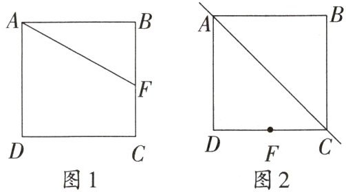 (2)如图2,点$F是CD$的中点,将直线$AC绕正方形ABCD的中心顺时针旋转45^\circ得到直线l$.