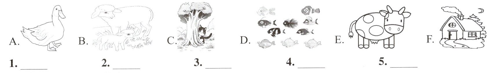 下面你将听到5段短对话。根据你所听到的内容,从所给的A、B、C、D、E、F六个选项中,选出与你所听内容相符的图片。每段对话听一遍。