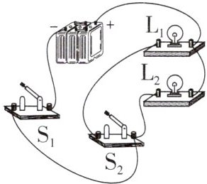 D.同时闭合$S_{1}$、$S_{2}$,灯$L_{1}和L_{2}$并联