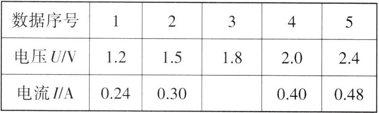 |电压$U/V$|1.2|1.5|1.8|2.0|2.4|