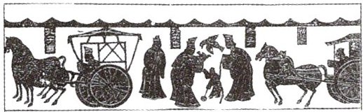 1. 下面是山东嘉祥武氏祠的孔子见老子画像石拓片,展现了春秋晚期孔子见老子的情形。图中人物孔子和老子所属学派分别是( )