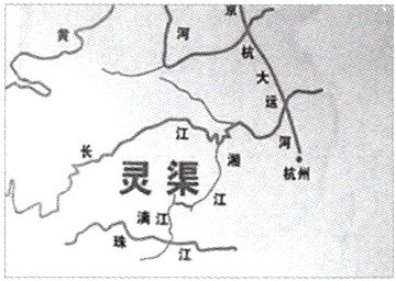 7. 公元前214年,灵渠凿成通航。灵渠流向由东向西,将兴安县东面的海洋河(湘江源头)和西面的大溶江(漓江源头)相连,是世界上最古老的运河之一,有着"世界古代水利建筑明珠"的美誉。如图为灵渠示意图,从图中可以看出,灵渠的作用是 ( )
