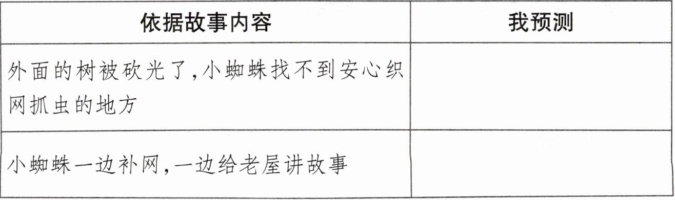 "没有,没有!"小蜘蛛一边忙着补网,一边回答,"老屋老屋,我给您讲个故事吧!"