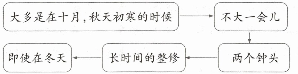 这些都是表示 的词语,从中可以看出蟋蟀修建住宅工期长,也可以看出作者进行了 观察。