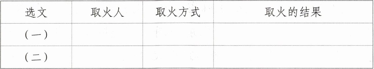 | 选文 | 取火人 | 取火方式 | 取火的结果 |