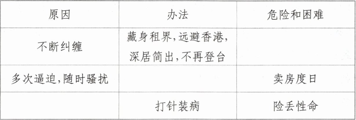 | 不断纠缠 | 藏身租界,远避香港,深居简出,不再登台 | |