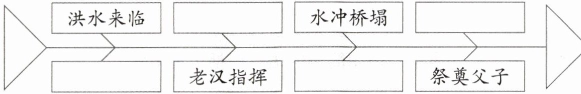 │ 洪水来临 │────▶│ │────▶│水冲桥塌│────▶│ │