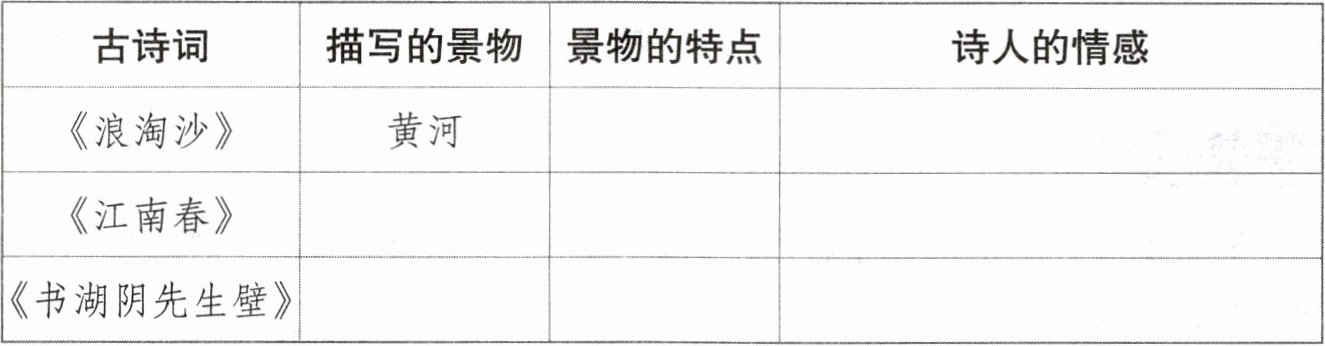 三、阅读三首古诗,补充表格。
