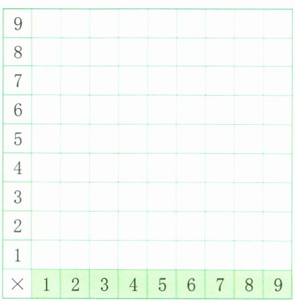 (1)像这样,在空白表格中分别写上“1~9”和“×”。