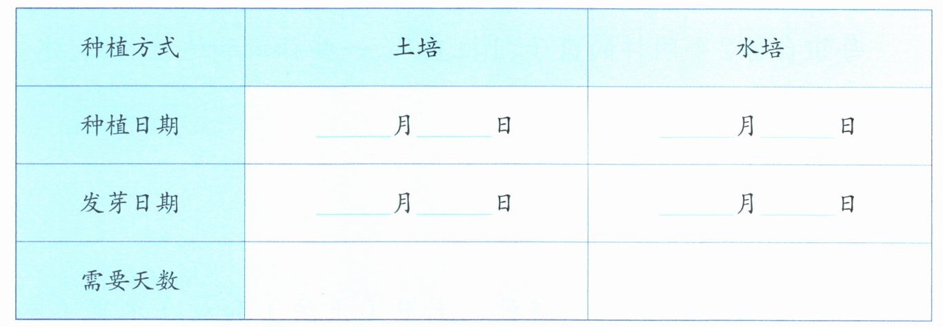 水培种植日期:假设为 10 月 1 日;发芽日期:假设为 10 月 3 日;需要天数:2 天。