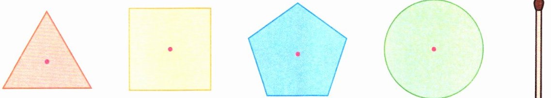 四人一组,每人选择下面的一种纸片。在每种形状的纸片上,分别在中心和偏离中心的位置,插入火柴棒制成陀螺。