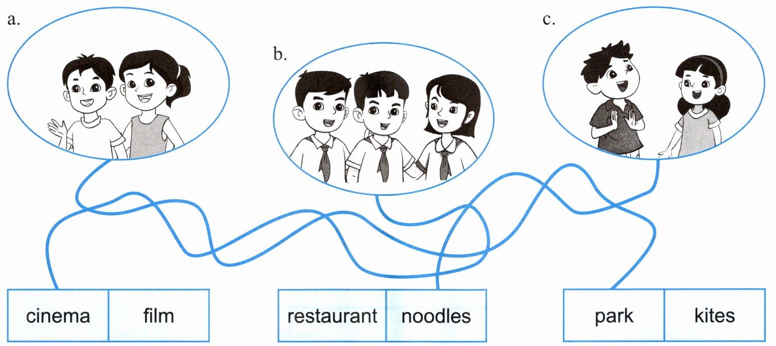 同学们,请注意题目中考查到的几个短语:watch a film,eat noodles,fly kites。其中“看电影”,必须用“watch”或“see”;“放风筝”可以说“fly kites”,也可以说“fly a kite”。