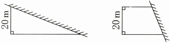 5. 王爷爷用两道同样长的篱笆,一面靠墙(墙足够长)围成两个菜园(如图)。比较菜园的面积,(