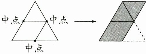 4. 新趋势 数学文化 《九章算术》中三角形面积的计算方法是“半广以乘正从”,其中“广”指的是三角形的底,“从”指的是三角形底边上的高。数学家刘徽注释时,用“以盈补虚”的方法配图加以说明。下图也是“以盈补虚”的一种方法,观察这个过程,下面的说法错误的是(