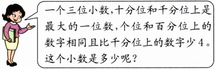 (3)整数部分是 0,十分位上是 9 的三位小数。