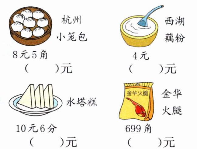 杭州小笼包 8 元 5 角 ( )元