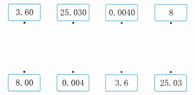 3.60连3.6;25.030连25.03;0.0040连0.004;8连8.00。