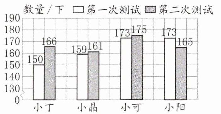 1. 为迎接学校跳绳比赛,五年级一班的四名参赛选手进行了模拟测试。下面是他们两次测试的成绩。