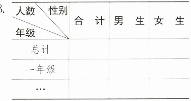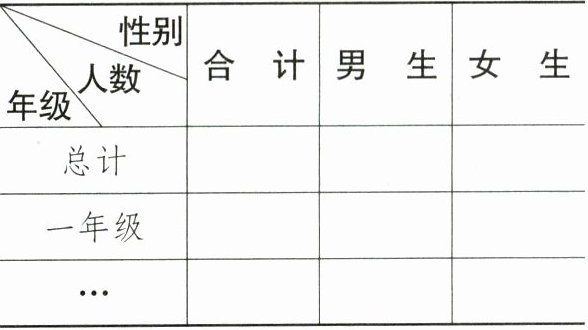 1. 同学们要统计全校各年级男生、女生的人数情况,下面的表头设计中,(