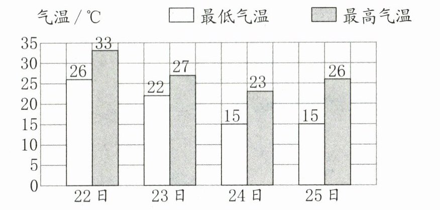 2. 新素养 应用意识 下面是宁德市某月 22 日至 25 日的气温统计图。