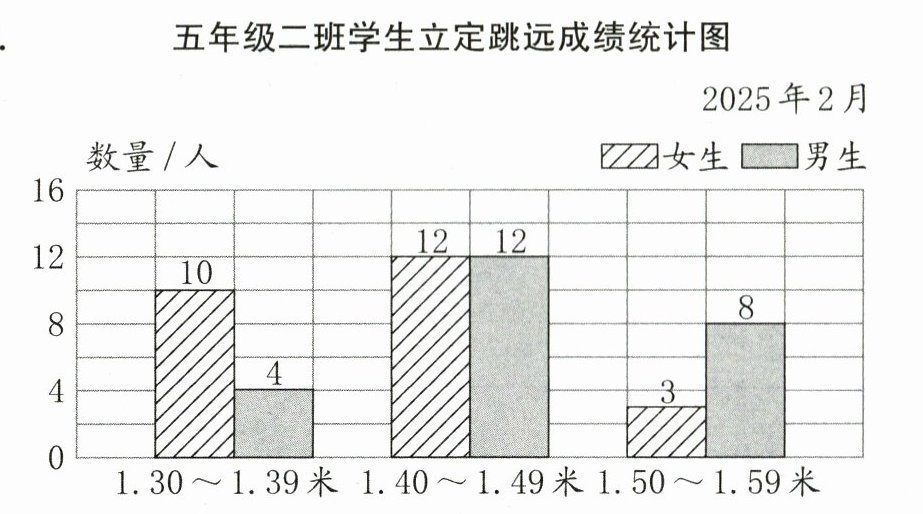 (2)新素养 数据意识 把全班女生的立定跳远成绩按从低到高的顺序排列,小丽排在第 15 个,她的成绩可能是(
