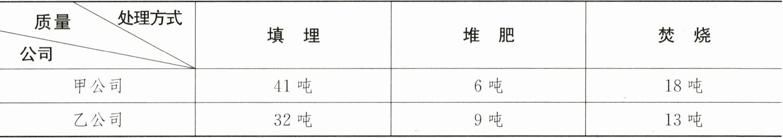 )。|质量|处理方式|填埋|堆肥|焚烧|
