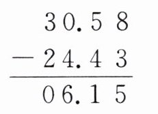 \begin{array}{r}30.58\\-24.43\\\hline06.15\end{array} $