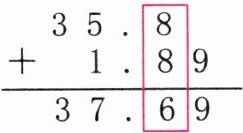 $\begin{array}{r}35.\textbf{8}\\+1.\textbf{8}9\\\hline37.\textbf{6}9\end{array} $