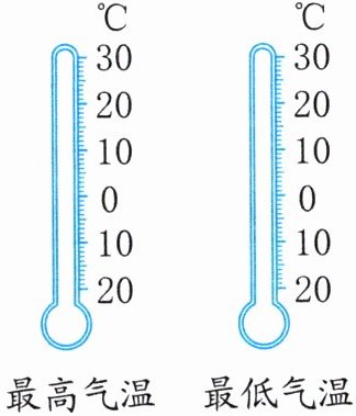 易错分析:易错在未正确理解正负数的意义,直接用5 - 2 = 3(℃)求解。根据温度计上表示出的两个温度,一个是0℃向上5个小格,一个是0℃向下2个小格,所以温差是5 + 2 = 7(℃)。