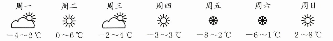 (2)请把该地区这周每天的最低气温按从低到高的顺序排一排。(3 分)