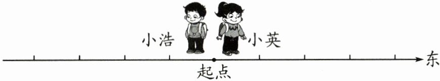 2. 下图中每一小段表示 50 米,用“○”在图中标出小浩每次到达的位置,用“△”在图中标出小英每次到达的位置。(向东记为正)