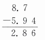 (2) $\begin{array}{r} 8.7\\ -5.94\\ \hline 2.86\end{array} $ ( )