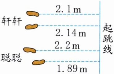 2.1 - 1.89 = 0.21(m) 轩轩跳得远,远0.21m