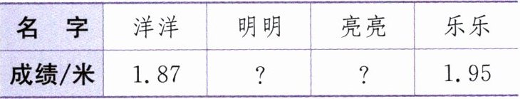 5. (创新应用)四名同学立定跳远的成绩如下表。请选择合适的信息,计算出明明的成绩。