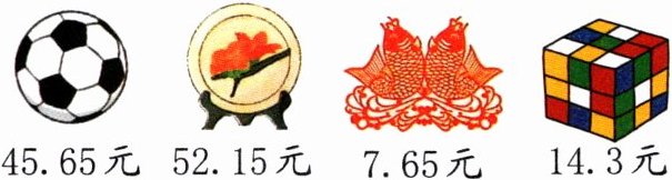 (2)100 - 40.2 = 59.8(元) 52.15 + 7.65 = 59.8(元)买的是52.15元的摆件和7.65元的剪纸