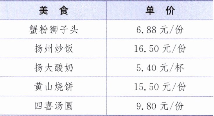 5. (地域美食)笑笑和妈妈到东关街游玩,当地部分美食的价格如下表: