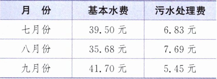 6. 贝贝家第三季度基本水费和污水处理费支出情况如下表: